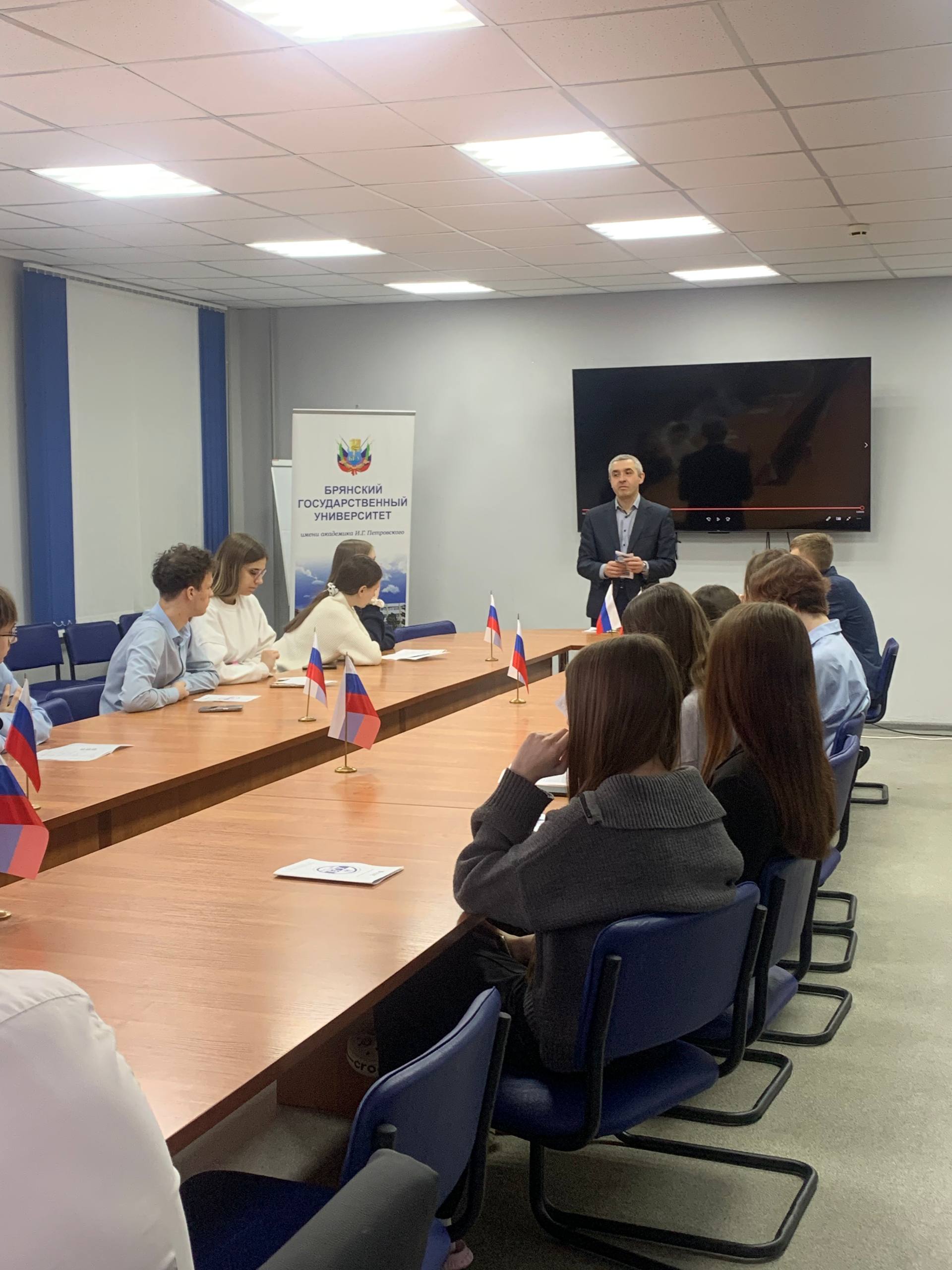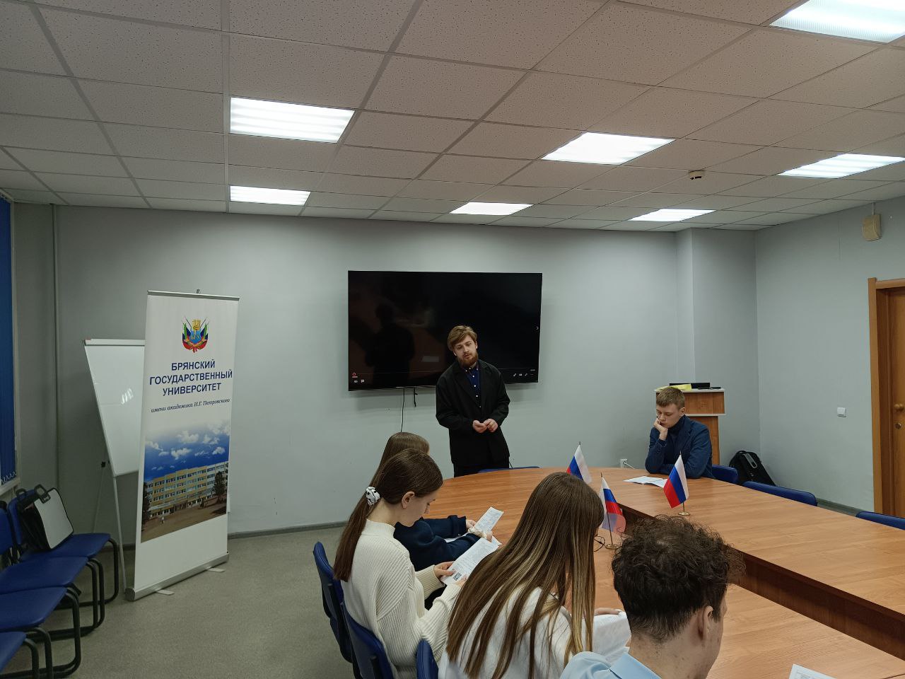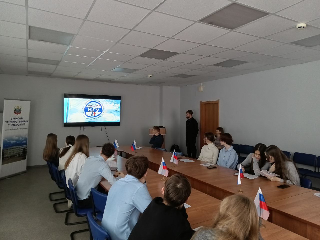 25 февраля 2026 года в конференц-зале школы №66 г. Брянска состоялось профориентационное мероприятие в рамках плана профориентационной работы факультета истории и международных отношений и финансово-экономического факультета БГУ. Перед школьниками выступил сотрудник приемной комиссии университета, студент 4 курса направления подготовки Педагогическое образование профиль «История, Обществознание»