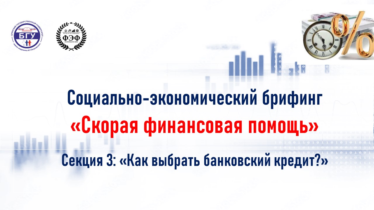 0 и 21 апреля 2026 года на площадке финансово-экономического факультета нашего Университета в рамках реализации социально-экономического брифинга «Скорая финансовая помощь» состоится третья секция образовательного проекта «Как выбрать банковский кредит?».