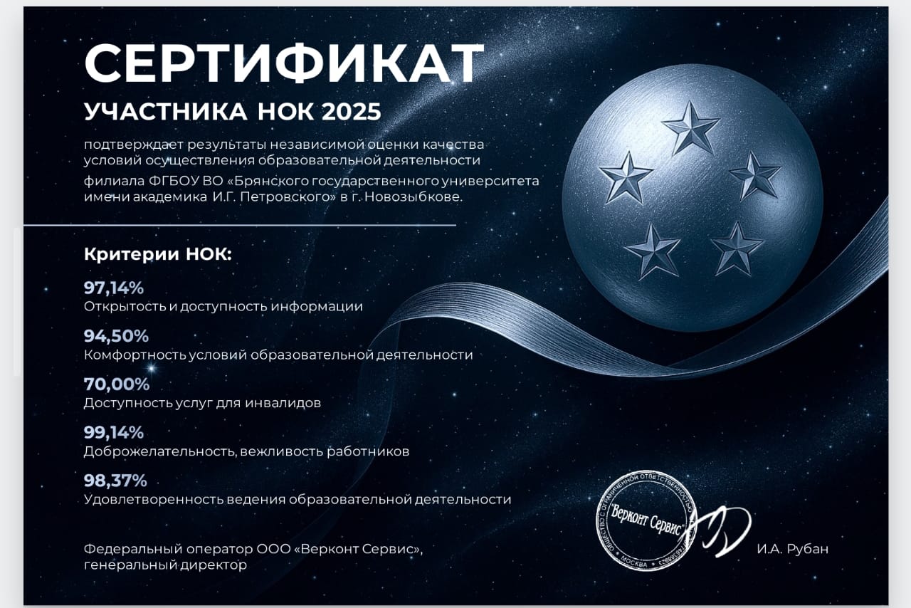 Результаты независимой оценки качества условий осуществления образовательной деятельности в Брянском государственном университете имени академика И.Г. Петровского
