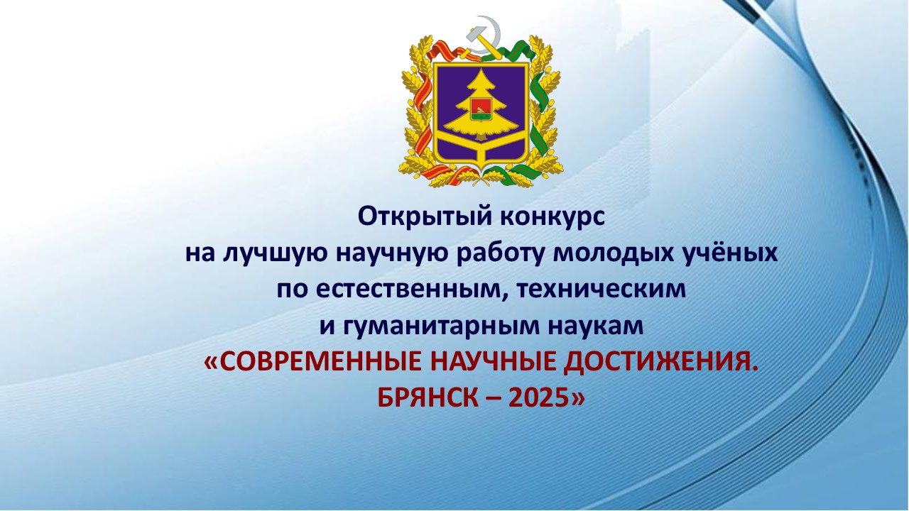 Аспиранты и молодые ученые БГУ – победители и призеры Открытого конкурса «Современные научные достижения. Брянск – 2025»Подведены итоги Открытого конкурса на лучшую научную работу молодых ученых по естественным, техническим и гуманитарным наукам «Современные научные достижения. Брянск – 2025», организатором которого выступил Департамент образования и науки Брянской области. |