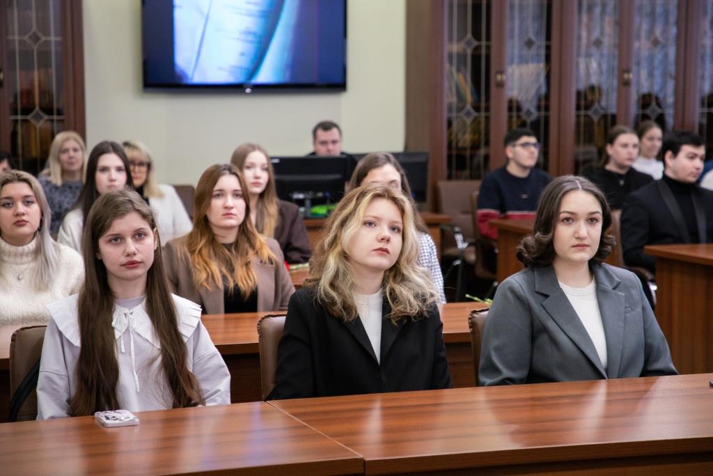 В рамках Часа памяти обучающиеся университета посмотрели документальный фильм, в котором представлены основные вехи биографии И.Г. Петровского. Жизнь ученого на протяжении многих лет была связана с Московским государственным университетом: здесь он прошел путь от студента, аспиранта до доцента, профессора, заведующего кафедрой, декана, ректора. Председатель Совета студентов и аспирантов Мачулин А.Е. и сотрудник экспозиционно-воспитательного центра Минкина И.А. рассказали о личности нашего знаменитого земляка, его увлечениях, основных научных трудах, которые и сейчас находятся в центре внимания ведущих математиков. В ходе встречи обучающиеся познакомились с фотографиями, личными вещами, книгами, которыми в дар университету передала жена ученого О.А. Петровская.
