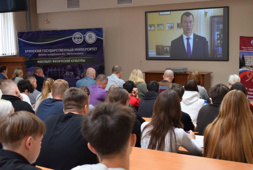 На площадке Брянского государственного университета имени академика И.Г. Петровского Всероссийский спортивный диктант написали более 150 человек – преподаватели, студенты и выпускники БГУ, тренеры спортивных школ Брянской области. В их числе: мастер спорта России, Чемпион мира по рукопашному бою, магистрант факультета физической культуры А. Горохов, мастер спорта России по рукопашному бою, неоднократная чемпионка и призер первенств России по рукопашному бою, студентка факультета физической культуры В. Иващенкова, мастер спорта России по спортивной гимнастике, преподаватель кафедры физического воспитания О.Н. Опалева, мастер спорта России по спортивной акробатике, преподаватель кафедры физического воспитания Ю.А. Украинцева.