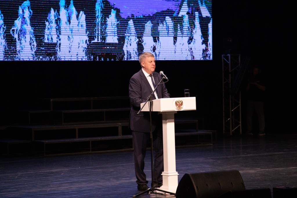Затем праздничные мероприятия продолжились в киноконцертном зале «Дружба», где состоялся театрализованный концерт «Брянский край — оплот Отечества». К его участникам обратился Губернатор Брянской области А.В. Богомаз, который поздравил всех присутствующих с 82-й годовщиной освобождения нашей родной земли от немецко-фашистских захватчиков и с 1040-й годовщиной образования города Брянска.