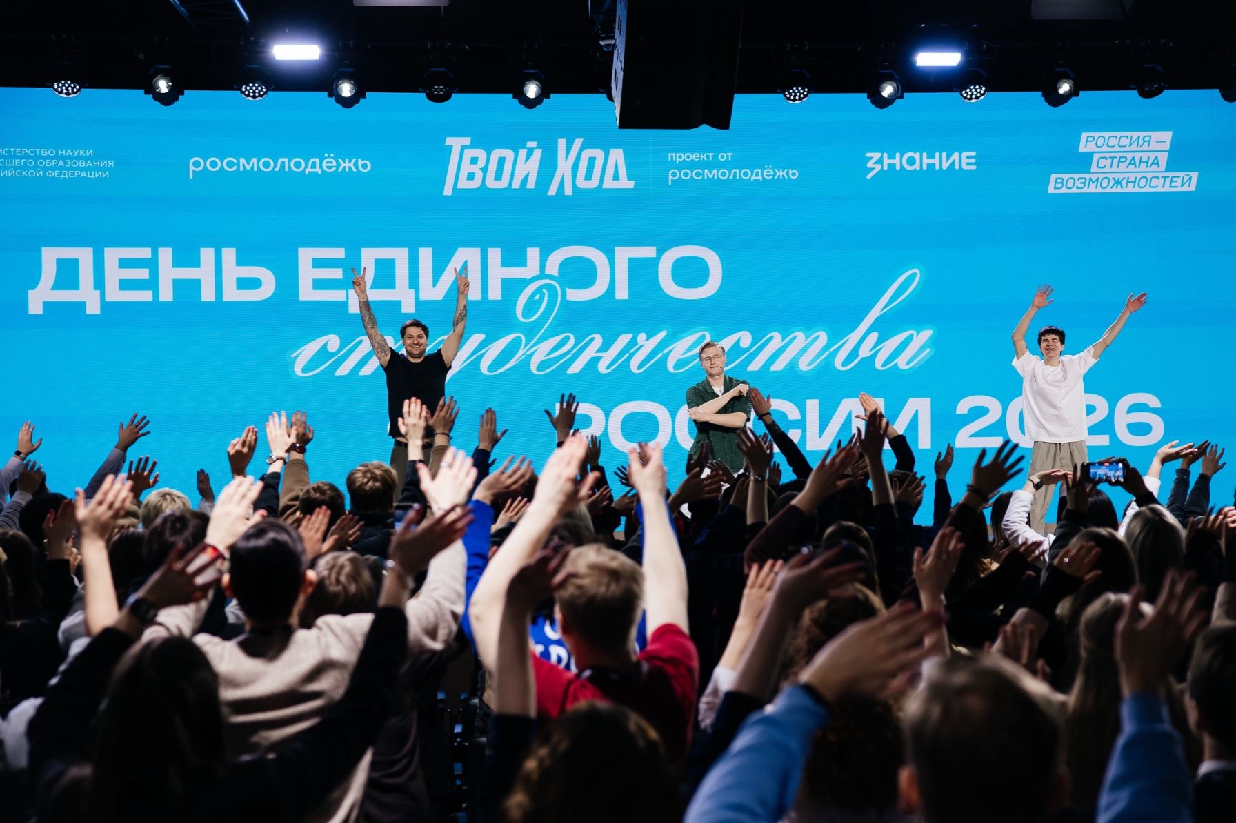 25 января в Национальном центре «Россия» прошло празднование Дня единого студенчества России — 2026. Мероприятие было организовано Министерством науки и высшего образования Российской Федерации при поддержке Российского общества «Знание», Росмолодежи и Всероссийского студенческого проекта «Твой Ход». В этом пространстве собрались 600 лучших студентов со всей страны. Наш университет представили обучающиеся факультета истории и международных отношений – председатель Совета студентов и аспирантов БГУ А.Е. Мачулин и руководитель информационной комиссии Совета студентов и аспирантов БГУ А.А. Дорохова.
