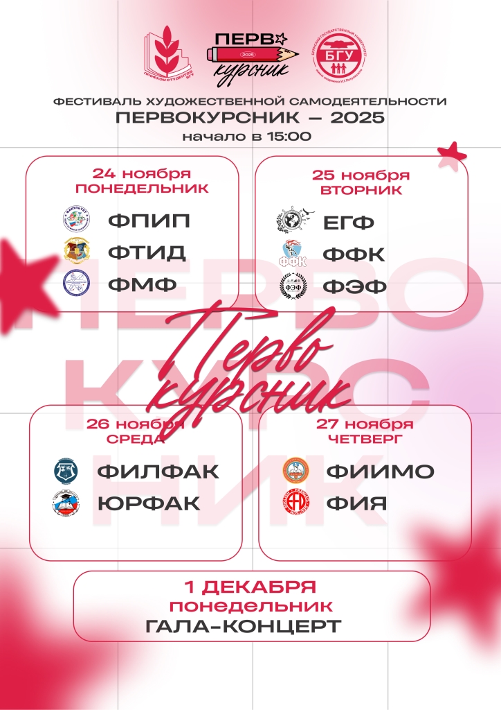 С 24 по 27 ноября в университете состоится самое масштабное студенческое событие осени – фестиваль художественной самодеятельности «Первокурсник-2025».