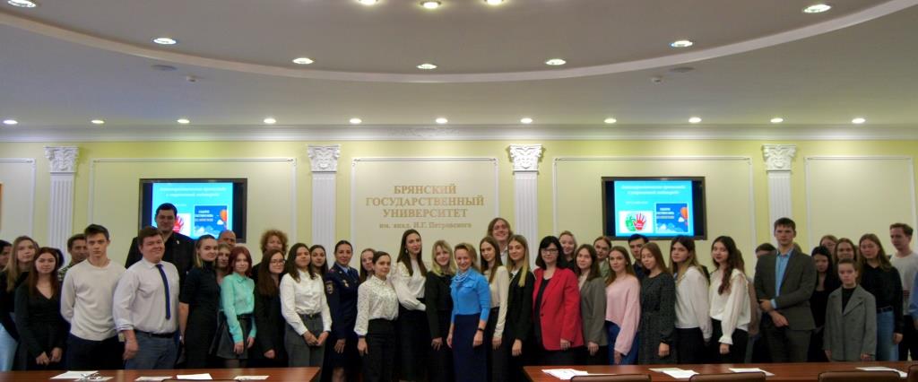 В мероприятии приняли участие оперуполномоченный по особо важным делам Управления по контролю за оборотом наркотиков УМВД России по Брянской области Галдина А.А., психолог АНО Центр поддержки людей, находящихся в трудной жизненной ситуации, «Любовь» Житкова Е.А., руководитель спортивно-патриотического клуба «Боец» Клименок С.В., руководитель отдела профилактики Симаков Р.В. и ведущий специалист АНО «Свобода» Борисенко Е.В., декан филологического факультета, доцент Киютина И.И., заместитель декана по учебной и научной работе, доцент Якубенко Е.Н.
