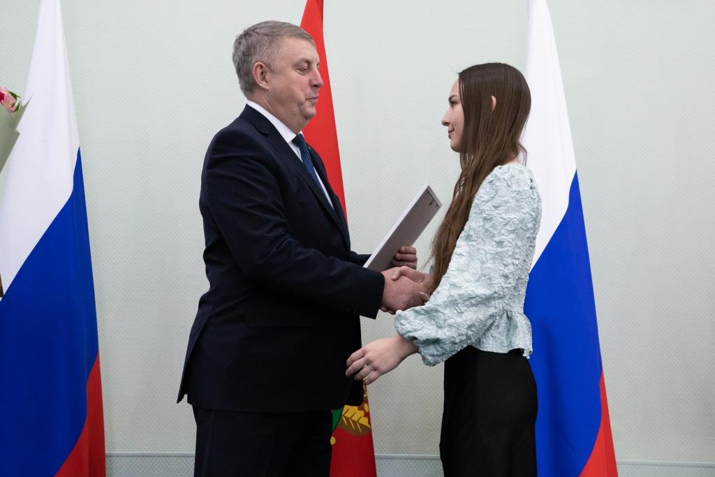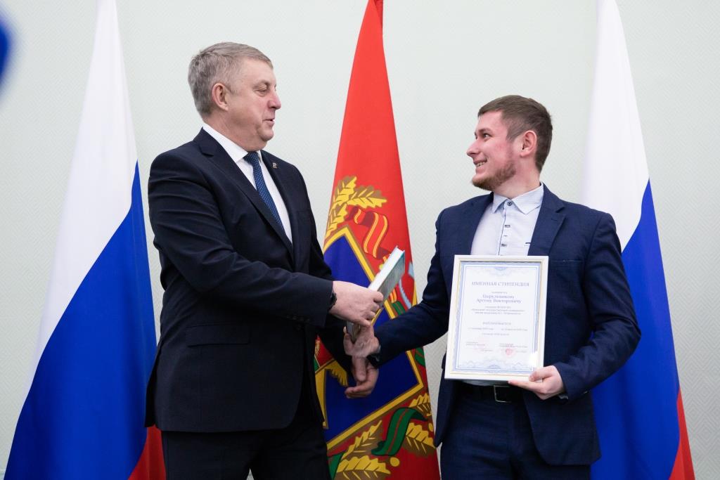 Девяти студентам нашего университета Губернатором Брянской области А.В. Богомазом были вручены сертификаты на получение стипендии. По представлению Ученого совета университета и в соответствии с решением Комиссии именные стипендии Брянской областной Думы и Правительства Брянской области получили следующие студенты и магистранты нашего вуза: