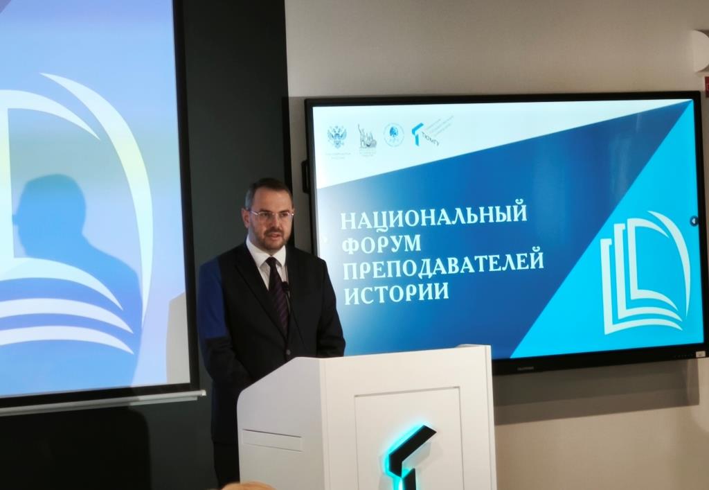 10-11 октября 2025 года в Тюмени прошёл IV Национальный форум преподавателей истории. Организаторами мероприятия выступили Министерство науки и высшего образования РФ, Российское историческое общество, Российский государственный гуманитарный университет и Тюменский государственный университет. В работе форума приняли участие представители более 140 университетов России. Наш университет представлял к.и.н., заместитель декана факультета истории и международных отношений Р.А. Соловьев.