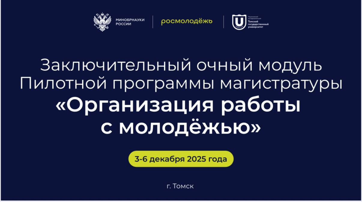 В Томске завершился финальный очный модуль пилотной программы магистратуры «Организация работы с молодёжью». Программа была разработана Министерством науки и высшего образования РФ совместно с Федеральным агентством по делам молодежи. В течение 2024-2025 гг. очные модули программы прошли в Центре знаний «Машук», МГТУ им. Н.Э. Баумана, Волгоградском государственном университете, Нижегородском молодёжном центре «Высота» и Национальном исследовательском Томском государственном университете.
