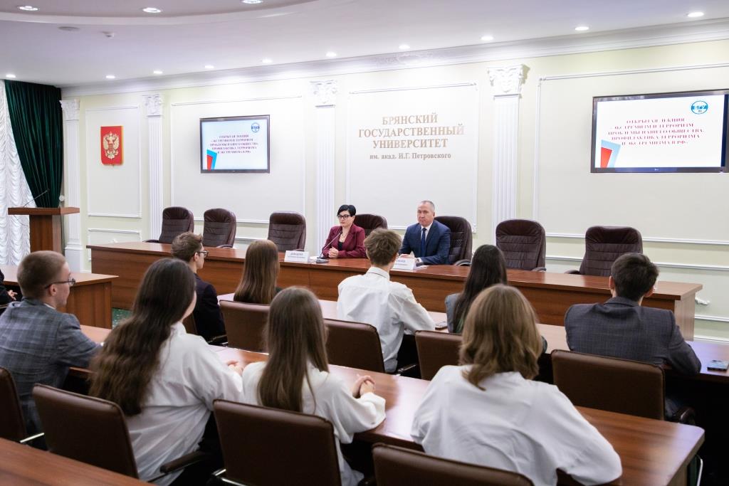 15 октября 2025г. в конференц-зале университета в рамках дискуссионной площадки «Открытый диалог» состоялась встреча адвоката Адвокатской палаты Брянской области Е.И. Давыдовой со студентами вуза. Мероприятие было организовано Координационным центром противодействия идеологии терроризма и профилактики экстремизма БГУ имени академика И.Г. Петровского и Управлением Министерства юстиции России по Брянской области.