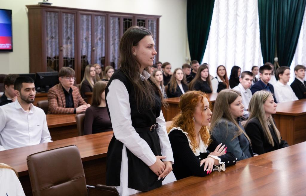 Для студентов-выпускников юридического факультета нашего университета особо актуальным было и второе направление встречи – профориентационное. Об условиях приёма и прохождения службы, о социальных гарантиях и льготах для сотрудников, о медицинском и санаторно-курортном обеспечении, о возможностях профессиональной карьеры и развития сотрудников участникам встречи рассказала старший специалист по работе с личным составом Следственного управления УМВД России по Брянской области В.Э. Дьякова.