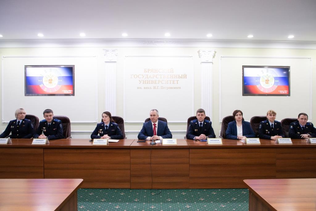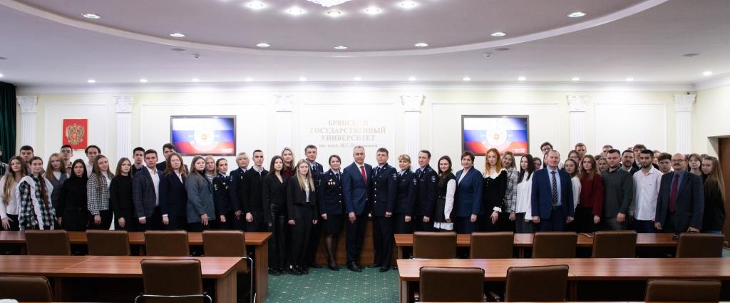 3 апреля в конференц-зале университета в рамках дискуссионной площадки «Открытый диалог» состоялась встреча заместителя начальника УМВД России по Брянской области – начальника Следственного управления полковника юстиции О.А. Юдиной и руководителей структурных подразделений Следственного управления со студентами юридического факультета. Модераторами площадки выступили директор Координационного центра противодействия идеологии терроризма и профилактики экстремизма Ю.К.Токаев и и.о. декана юридического факультета Е.В. Ткаченко.
