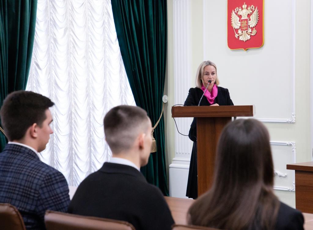 С приветственным словом к участникам «Открытого диалога» обратилась проректор университета по социальным вопросам, молодёжной политике и воспитательной работе И.И. Киютина. Ирина Ивановна представила гостей вуза, особо отметив уникальность встречи для студентов юридического факультета, у которых есть возможность напрямую задать руководителям Следственного управления интересующие их вопросы.
