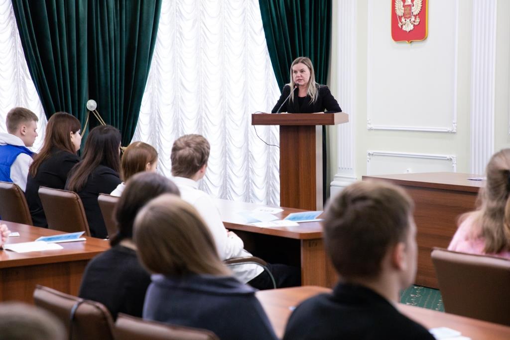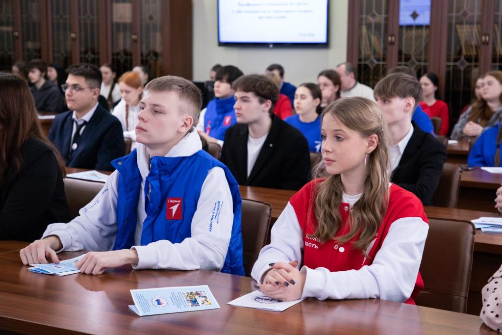 Председатель регионального отделения Общероссийского общественно-государственного движения детей и молодежи «Движение Первых» А.В. Чуркова обосновала актуальность образования в сфере организации работы с молодежью для современных выпускников школ, выбирающих профессию. А.В. Чуркова продемонстрировала, как работает экосистема молодежной политики «Движение Первых» в нашей стране, направленная на получение фундаментального образования в различных областях знания, в том числе и в направлении подготовки «Организация работы с молодежью». Был показан ролик о «Движении Первых», в котором рассказано об увлекательных и полезных для общества делах членов организации.