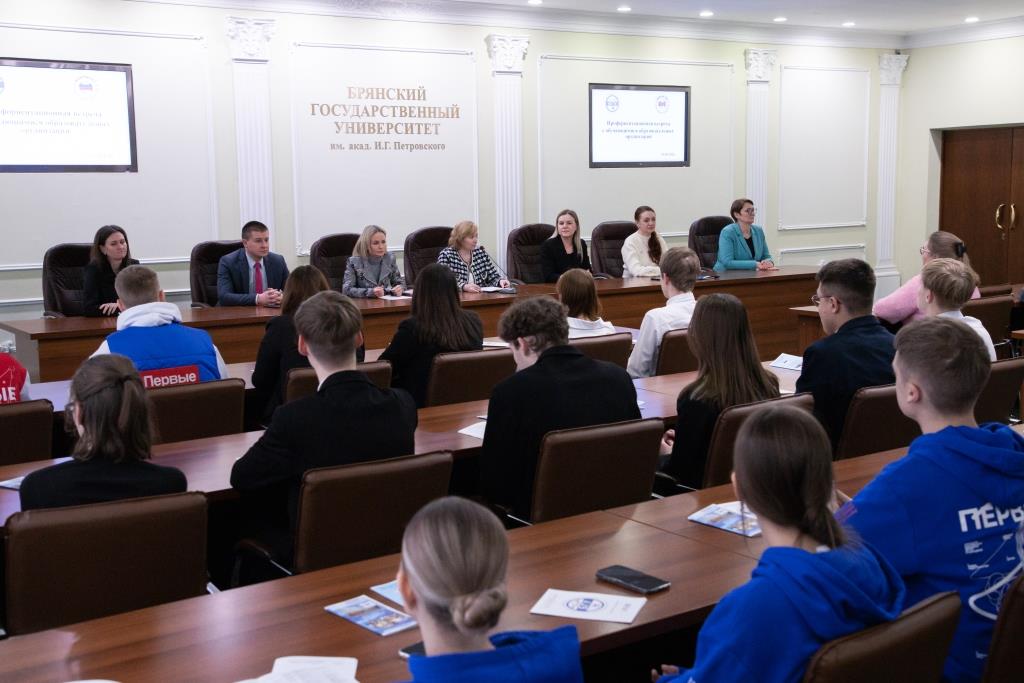 В рамках профориентационной работы факультета педагогики и психологии состоялась встреча с выпускниками города Брянска. Встреча была посвящена информированию обучающихся об актуальном и востребованном на сегодняшний день направлении подготовки 39.03.03 «Организация работы с молодежью, профиль Технологии реализации молодежной политики». Во встрече приняли участие более 60 обучающихся.