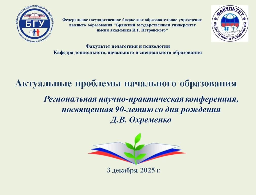 3 декабря 2025 года в Брянском государственном университете имени академика И.Г. Петровского состоялась Региональная научно-практическая конференция «Актуальные проблемы начального образования», посвященная 90-летию со дня рождения Д. В. Охременко. Среди участников конференции – руководители образовательных организаций города Брянска, Заслуженные учителя, преподаватели и студенты, выпускники факультета.