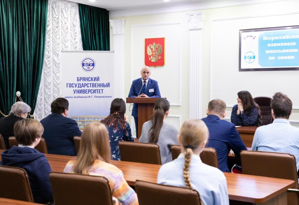 С приветственным словом к участникам олимпиады обратились начальник отдела общего и дошкольного образования департамента образования и науки Брянской области И.А. Иванов, проректор по образовательной деятельности университета доцент А.И. Калоша, и.о. декана естественно-географического факультета А.Л. Харлан и председатель жюри заведующий кафедрой химии доцент С.В. Кузнецов.