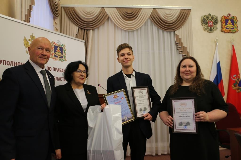 Победителям и призерам конкурса также вручили Дипломы и памятные подарки от Уполномоченного по правам ребенка в Брянской области, Благодарственные письма Брянской областной Думы.
