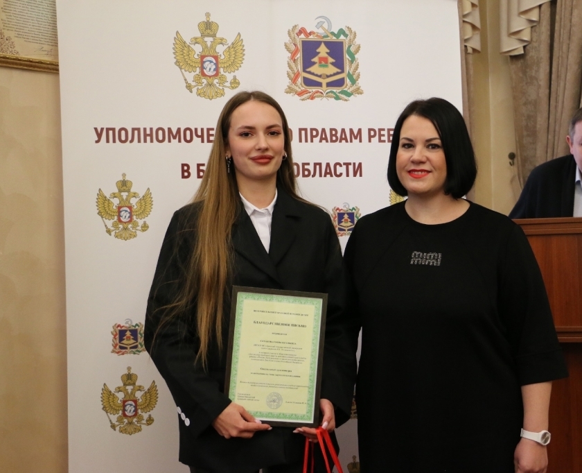 Специальные призы от Управления Минюста России по Брянской области и от Центра бесплатной правовой помощи детям также присуждены Яковенко Алине, студентке 4 курса и Симаковой Софии, студентке 3 курса юридического факультета Брянского государственного университета имени академика И.Г. Петровского.