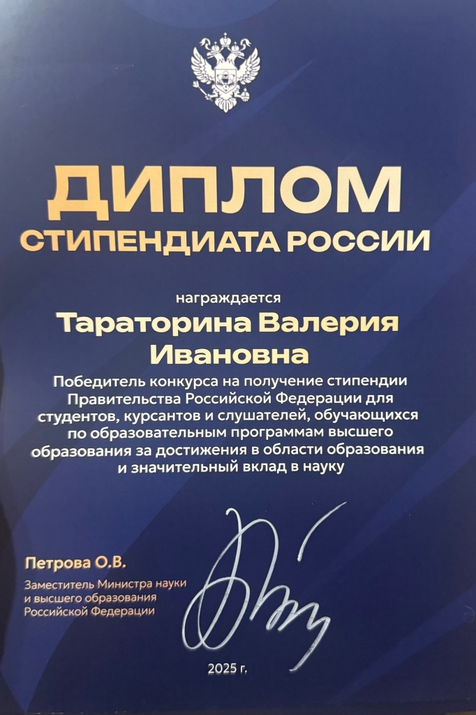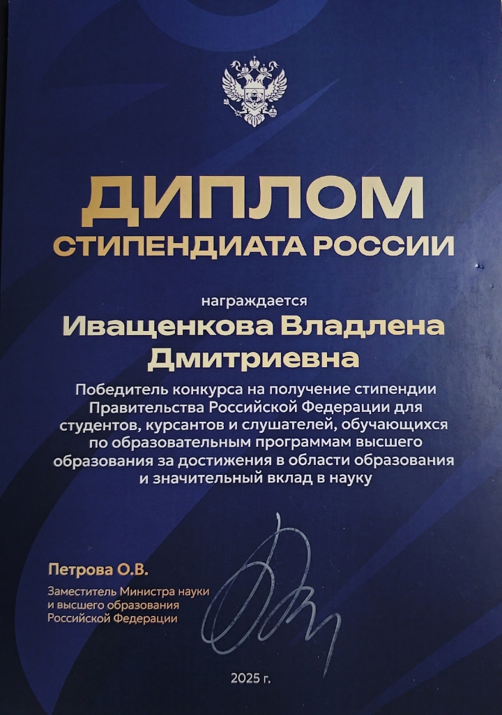 16 декабря 2025 г. на площадке Российского университета дружбы народов им. Патриса Лумумбы состоялась торжественная церемония награждения лауреатов новых стипендиальных программ Президента и Правительства Российской Федерации, а также обладателей именных стипендий Министерства науки и высшего образования Российской Федерации.