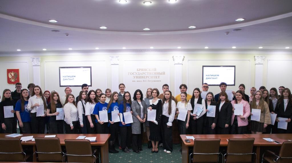 Организатором акции в БГУ традиционно выступили филологический факультет и кафедра русского языка. На площадке университета текст читали заведующая кафедрой русского языка доцент Н.В.Трошина и и.о. заведующей кафедрой русской, зарубежной литературы и массовых коммуникаций доцент Е.В. Левичева. «Тотальный диктант» в БГУ объединил людей разных возрастов, профессий; участниками акции стали не только студенты и преподаватели БГУ, но и другие жители Брянска, неравнодушные к проблеме повышения грамотности.