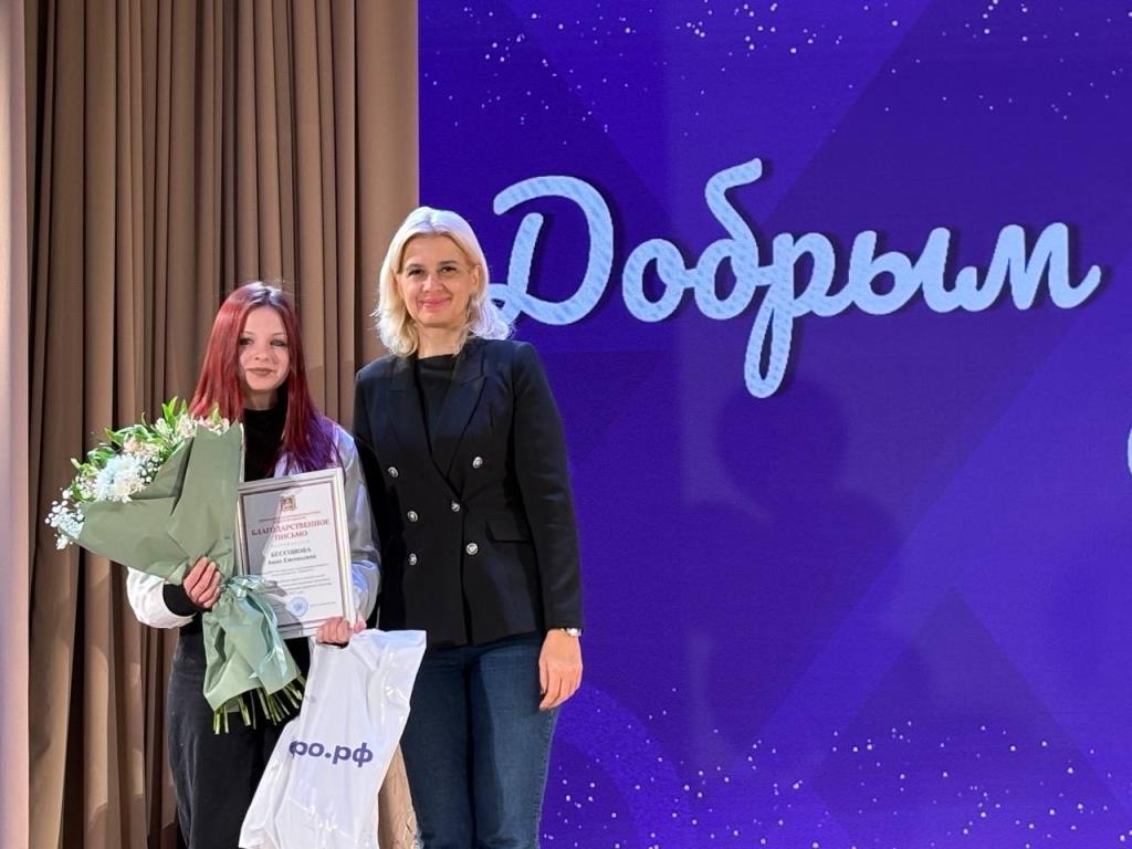 Наградой за активное участие в организации и проведении важных общественно-политических мероприятий в регионах ЦФО была награждена студентка физико-математического факультета, руководитель волонтерского отряда «Радуга надежды» Алина Абашина.