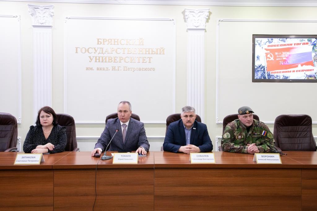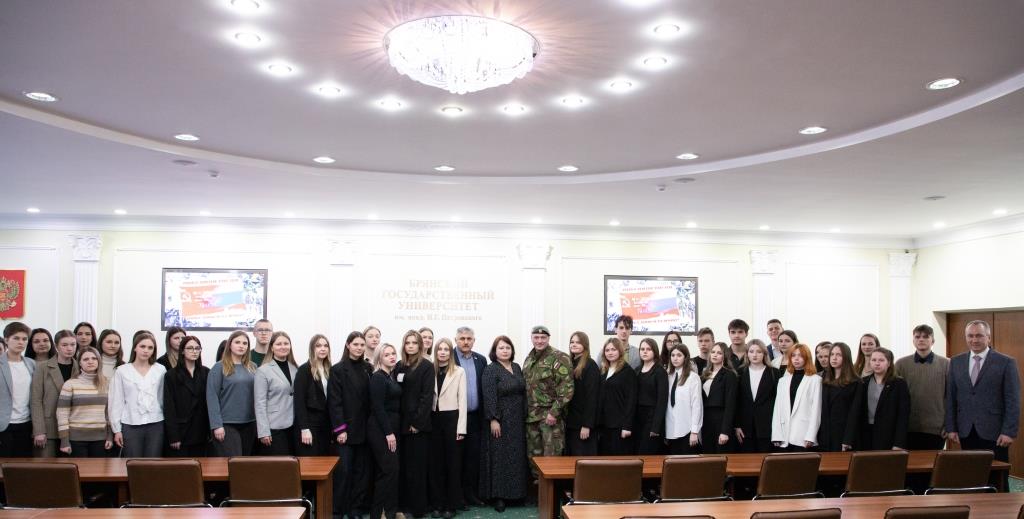 Гостями БГУ стали председатель поискового движения «Отечество», региональный координатор федерального проекта «Без срока давности» А.В. Соболев и руководитель региональной ветеранской организации специального назначения «Витязь-Брянск», ветеран боевых действий на Северном Кавказе А.Н. Воронин.