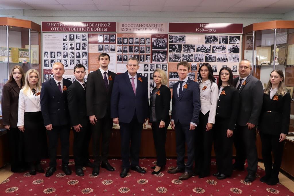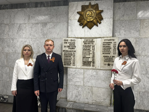 В этот же день к акции присоединились руководители нашего университета во главе с ректором университета профессором А.В. Антюховым, которые совместно с активистами студенческого патриотического клуба почтили память выпускников, студентов, преподавателей нашего вуза, вставших на защиту Родины в годы Великой Отечественной войны.