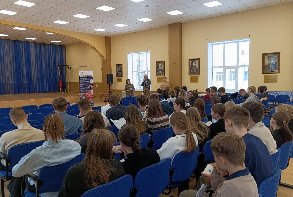 Вторая часть визита продолжилась в актовом зале Кировского индустриально-педагогического колледжа имени А.П. Чурилина. Для выпускников специальностей «Начальное образование», «Дошкольное образование» и «Физическая культура» был продемонстрирован видеоролик об университете. Особый интерес у аудитории вызвала возможность поступления по внутренним вступительным испытаниям, проводимым вузом самостоятельно (без учета ЕГЭ). Представители вуза раздали информационные проспекты и буклеты, а также провели индивидуальные консультации, в ходе которых разъяснили тонкости подачи документов через портал «Госуслуги», особенности целевого обучения и творческих испытаний.