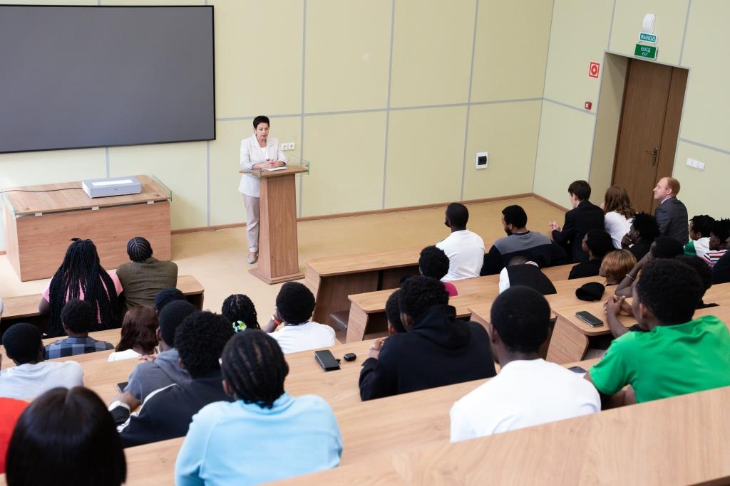 Проректор по социальным вопросам, молодежной политике и воспитательной работе И.И. Киютина познакомила студентов с Уставом университета, Правилами внутреннего распорядка, рассказала о правилах проживания в общежитии, о культуре поведения в университете, прояснила вопросы, касающиеся прав и обязанностей студентов-иностранных граждан. Ирина Ивановна ознакомила студентов-иностранцев с мероприятиями воспитательного характера, с деятельностью студенческих общественных объединений университета. Председатель Совета студентов и аспирантов А.Е. Мачулин рассказал о работе студенческих объединений и возможностях участия в культурной и общественной жизни университета.