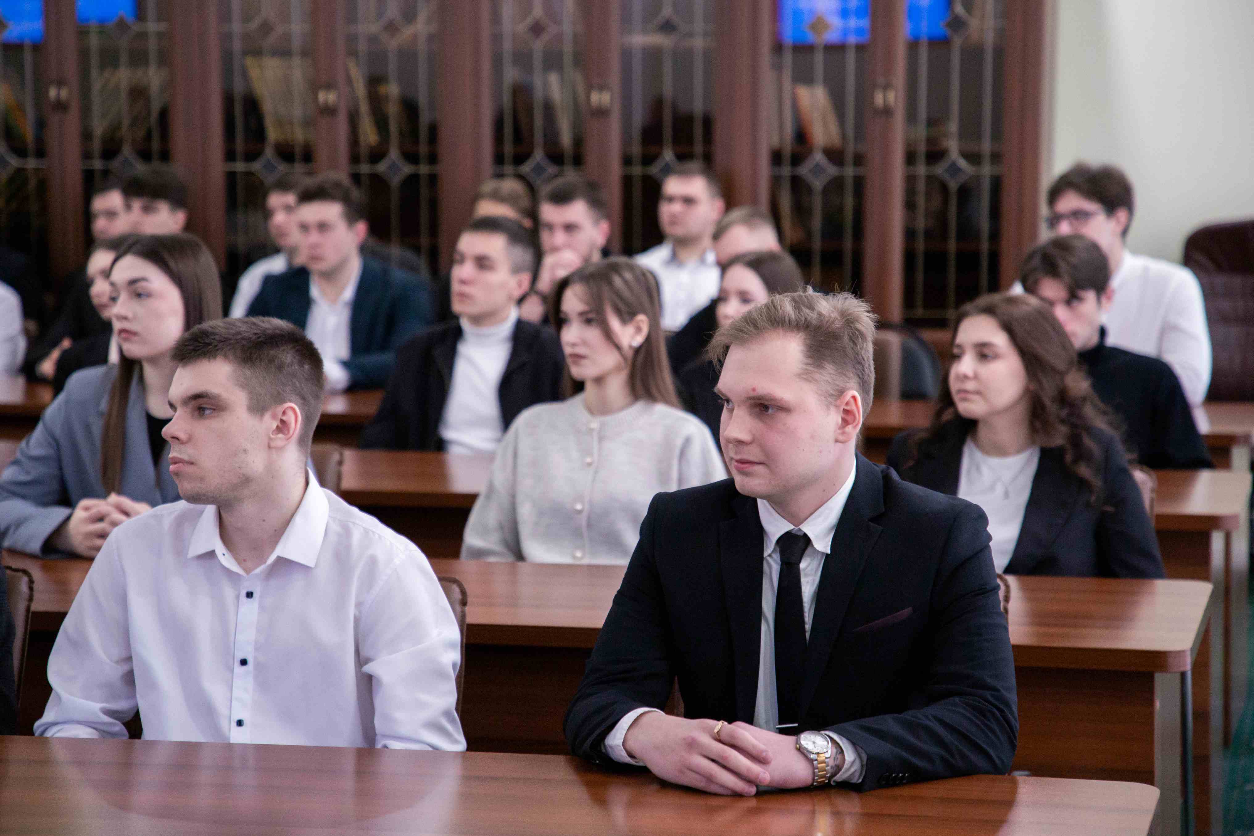 В.Я. Мосин рассказал студентам о своем профессиональном становлении, делая при этом акцент на важности постоянного самообразования и саморазвития. Он с теплотой вспомнил своих учителей и наставников, чей опыт оказал на него большое влияние в дальнейшей профессиональной деятельности.