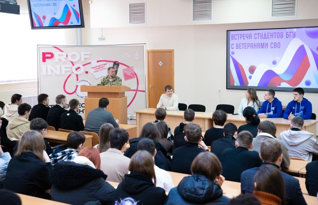В рамках Всероссийского патриотического проекта «Победили тогда, победим и сейчас!» и плана мероприятий, приуроченных Году защитника Отечества, при поддержке Брянского филиала Фонда «Защитники Отечества» и БРО ВОО «Молодая гвардия Единой России» на площадке физико-математического факультета состоялась встреча студентов университета с ветераном специальной военной операции Николаем Болтышевым.