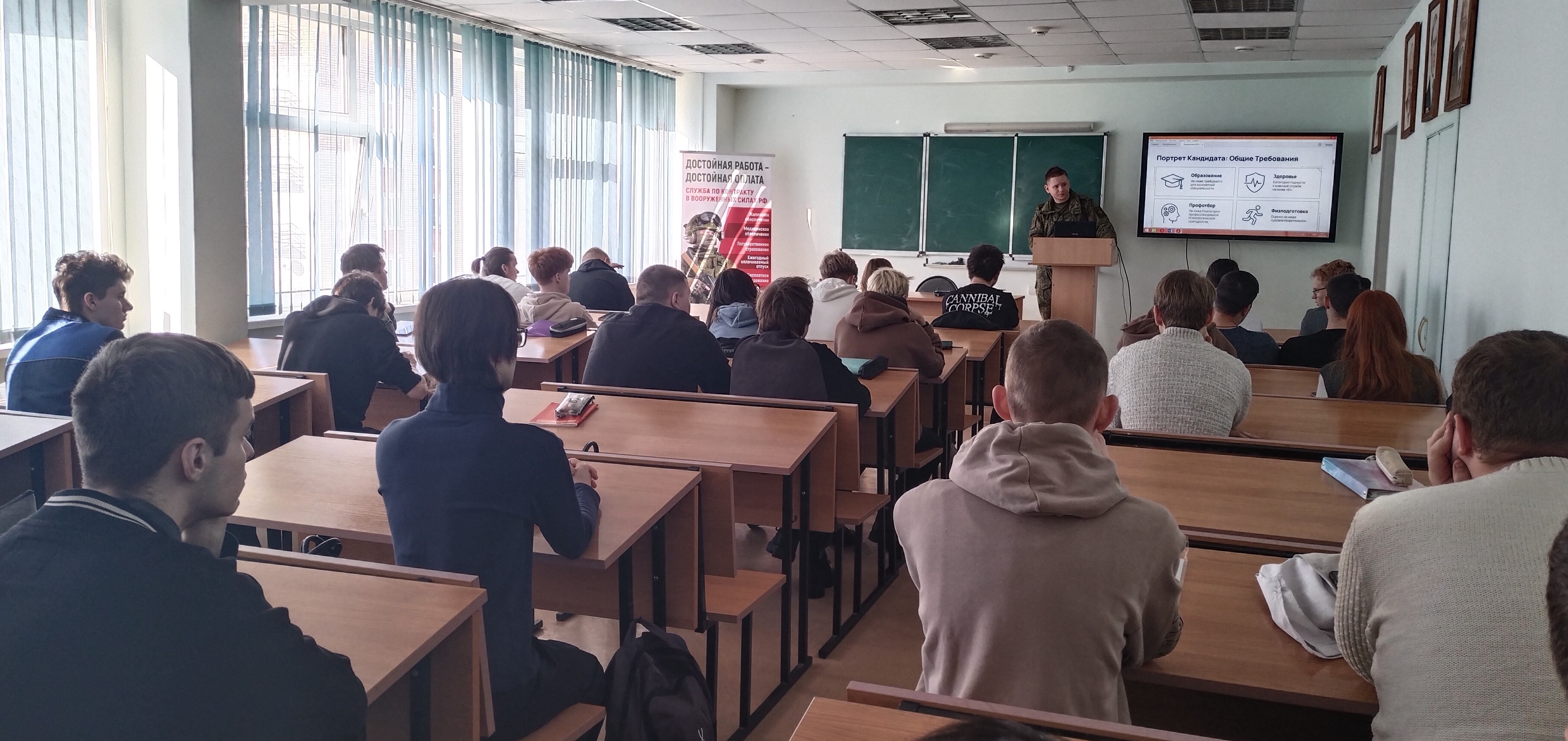 Особое внимание было уделено диалогу со студентами. Обучающиеся активно задавали вопросы, проявив высокий интерес к следующим темам: порядок поступления на военную службу по контракту, квалификационные требования к кандидатам, возможности совмещения службы с продолжением образования, академические льготы для военнослужащих.