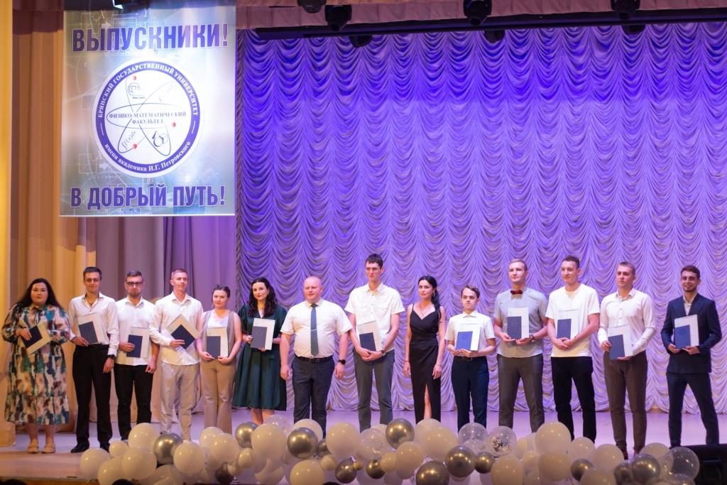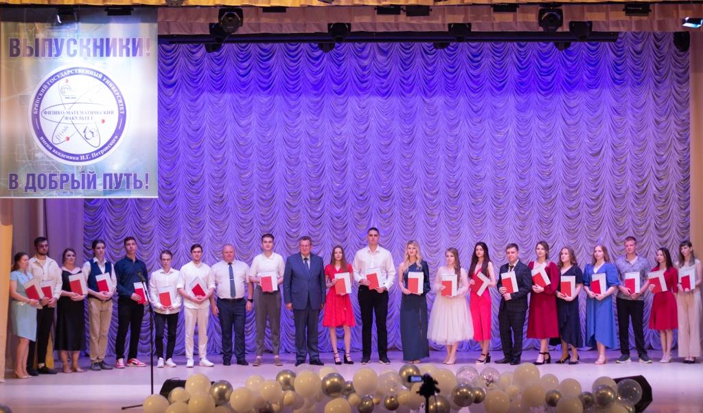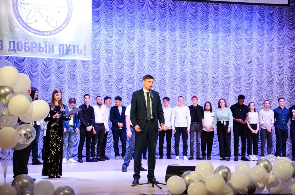 С поздравительной речью обратился к выпускникам декан физико-математического факультета, доцент А.В. Савин, который выразил уверенность в том, что сформированные в стенах родного факультета профессиональные компетенции и бесценный опыт профессорско-преподавательского состава станут прочным фундаментом и помогут построить успешную карьеру. Александр Владиславович пожелал выпускникам успехов во всех начинаниях, лёгкого достижения целей, быть настойчивыми и целеустремленными, продолжать самосовершенствоваться и открыть новые грани своих способностей и талантов, а также с гордостью нести почетное звание «Физматовец». Обращаясь к выпускникам, декан факультета пригласил их продолжить свое обучение в стенах родного факультета в магистратуре и аспирантуре.