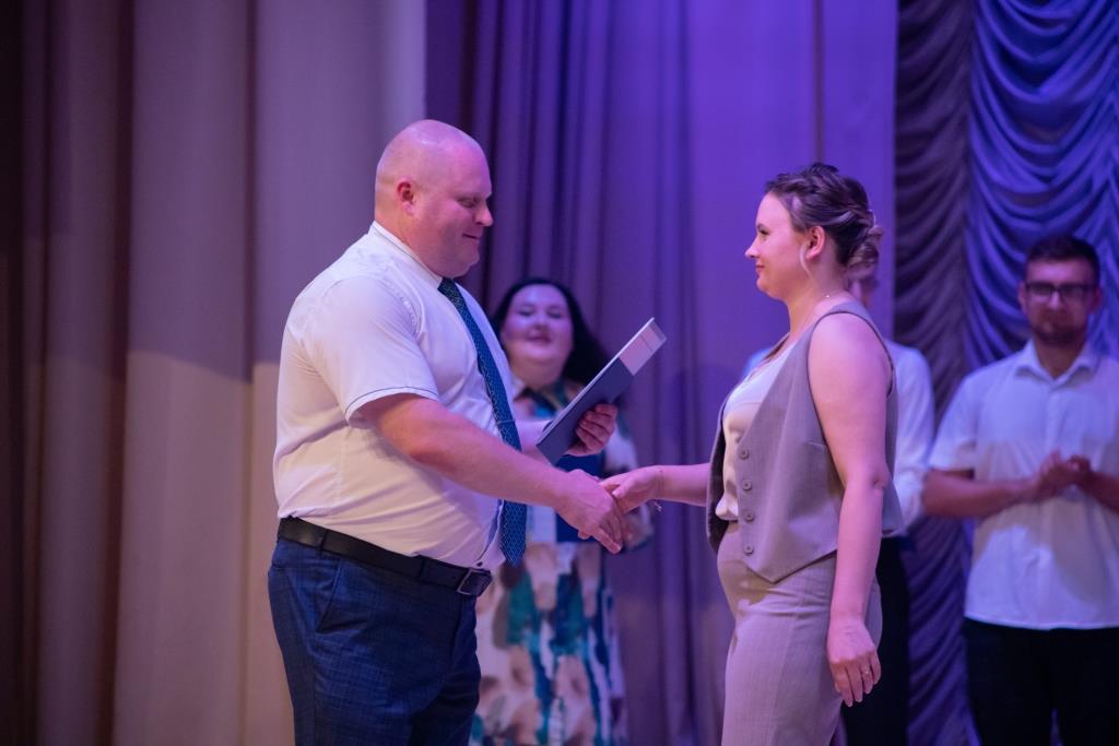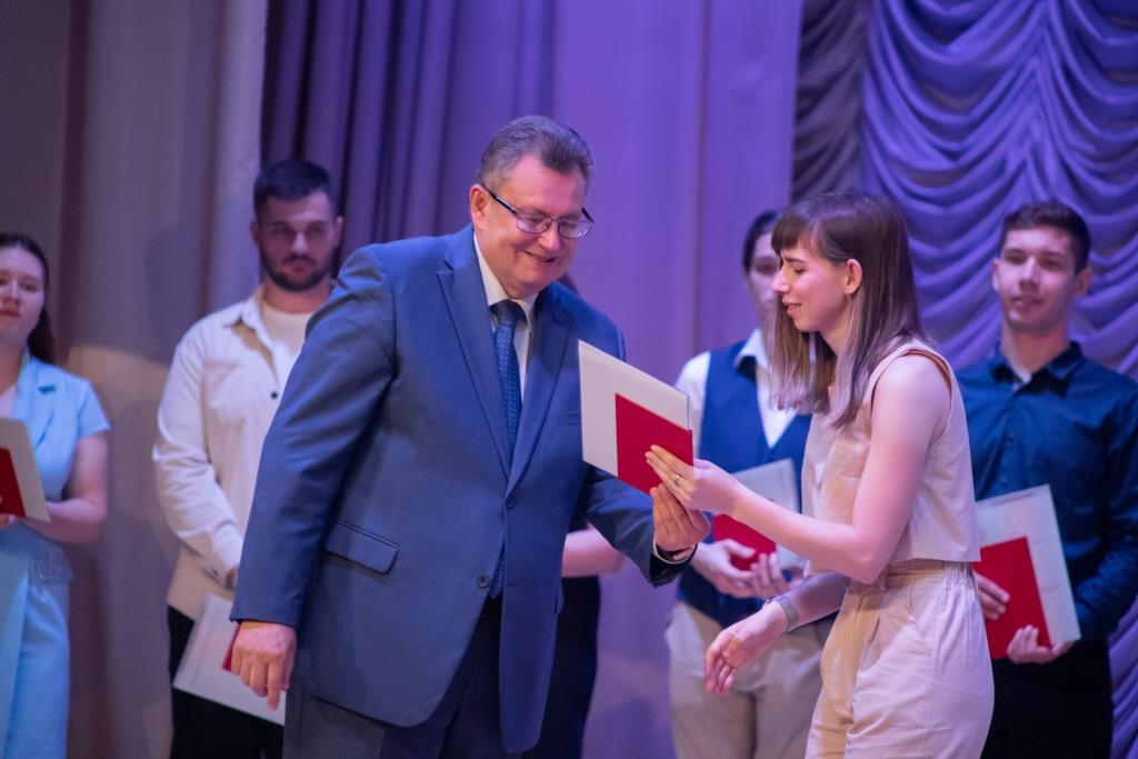 С окончанием университета и получением дипломов со сцены актового зала выпускников физико-математического факультета поздравил ректор университета, профессор А.В. Антюхов. Говоря тёплые слова выпускникам, Андрей Викторович обратил внимание, что впереди у молодых людей пора свершений. Они вступают в эту жизнь в очень интересное время масштабного внедрения цифровых технологий и искусственного интеллекта, ускорения темпов инновационного развития разных отраслей экономики России. Руководитель вуза подчеркнул активность, добросовестность, высокий профессиональный потенциал выпускников и пожелал им состояться в профессиональном и человеческом плане.