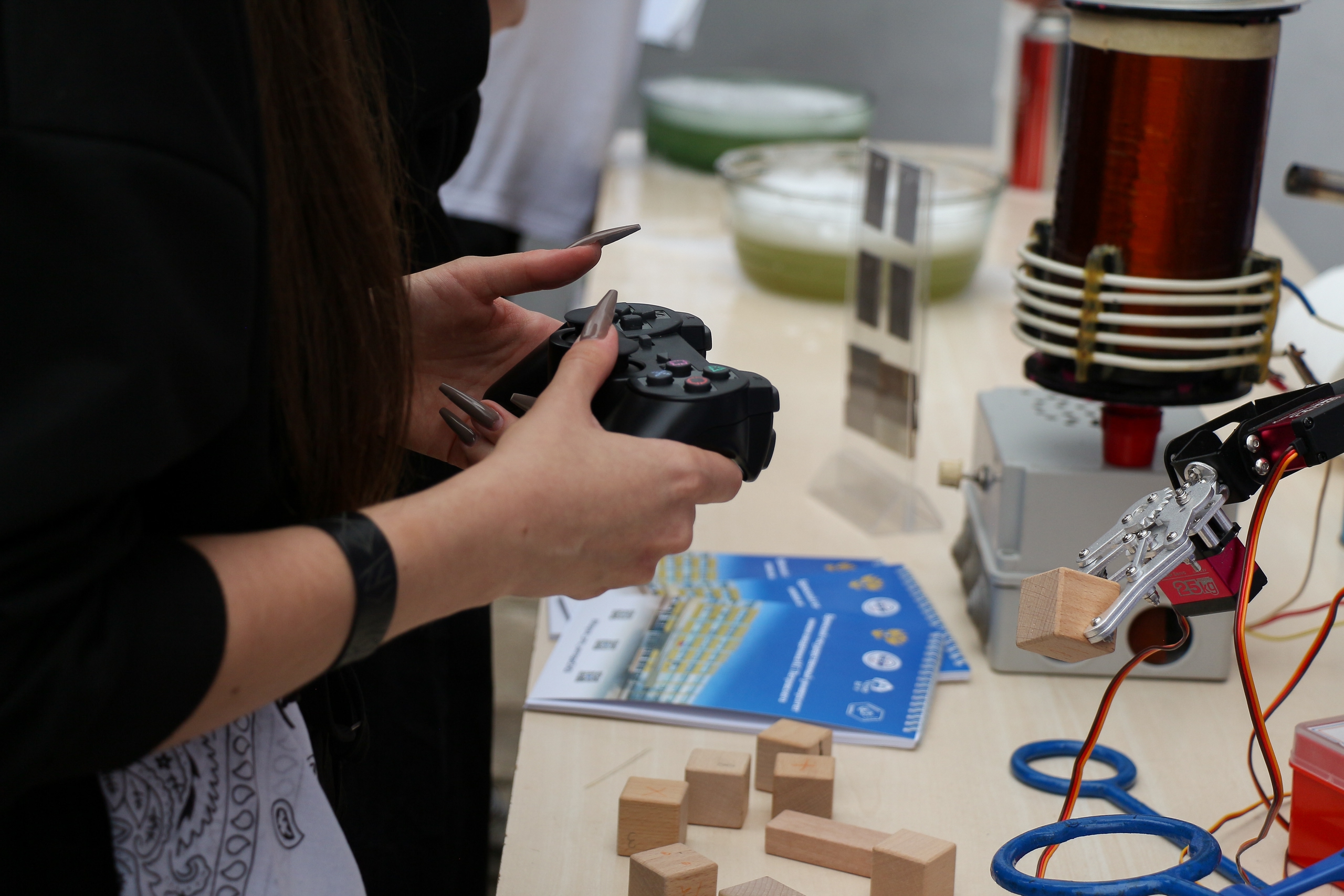 В интерактивной зоне тематической площадки СНО БГУ все желающие смогли управлять работой роботехнических систем, собрать спилс-карты и проверить свои знания в области административно-территориального устройства Брянской области, решить занимательные кроссворды и филворды, ответить на вопросы познавательной викторины, стать участниками флешмоба!
