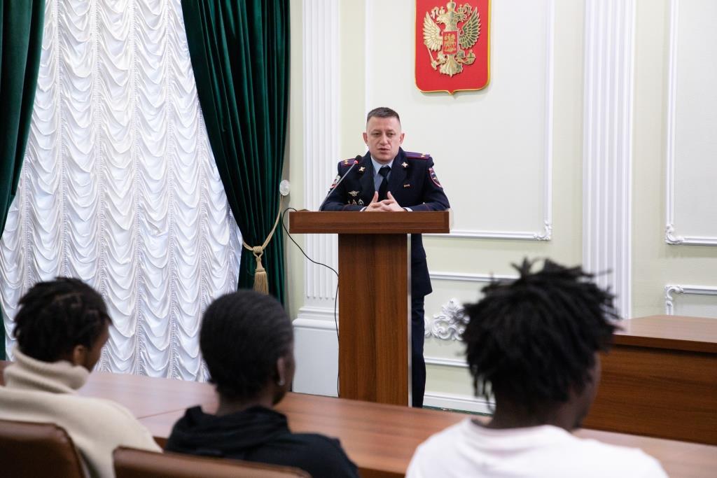 Об основных правовых аспектах пребывания иностранных студентов на территории Брянской области, изменениях миграционного законодательства Российской Федерации и основных требованиях, предъявляемых к иностранному гражданину, рассказал старший инспектор отделения иммиграционного контроля Управления по вопросам миграции УМВД России по Брянской области старший лейтенант полиции Е.А. Потоцкий.