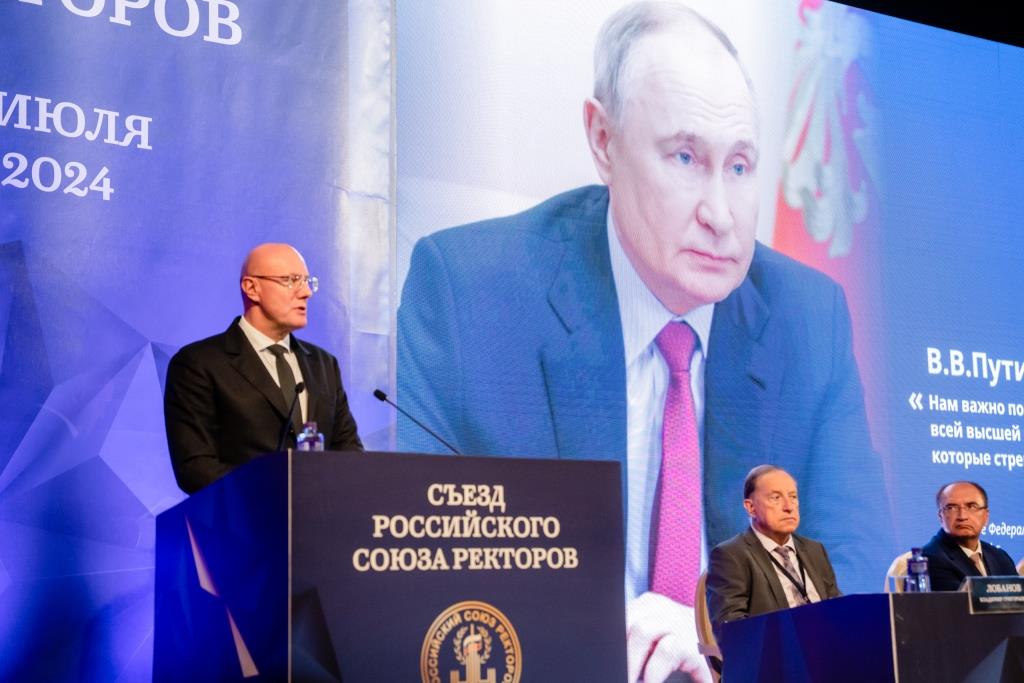 Рабочая часть крупнейшего за последние годы форума лидеров научно-образовательного сообщества страны открылась докладом президента Российского Союза ректоров академика В.А. Садовничего. С приветствием к ректорскому корпусу обратился Президент России В.В. Путин. Почетными гостями Съезда стали заместитель председателя Правительства Российской Федерации Д.Н. Чернышенко, помощник главы государства А.А. Фурсенко, президент Российской академии наук Г.Я. Красников, президент Российской академии образования О.Ю. Васильева, видные парламентарии. В работе съезда принимают участие президенты и ректоры 617 вузов России.
