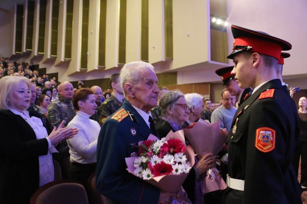 Стоя, бурными овациями зрительный зал встречал участника Великой Отечественной войны, полковника, почетного гражданина города Брянска Б.В. Шапошникова, участника Великой Отечественной войны, почетного гражданина города Брянска М.И. Заболоцкого, бывшую малолетнюю узницу фашистского концлагеря Р.Д. Трошину, кавалера ордена «Знак Почета», почетную гражданку Брянской области, заслуженного мастера спорта по легкой атлетике, 5-кратную чемпионку и рекордсменку мира и Европы, 17-кратную чемпионку СССР и России по легкой атлетике Л.И. Самотесову.