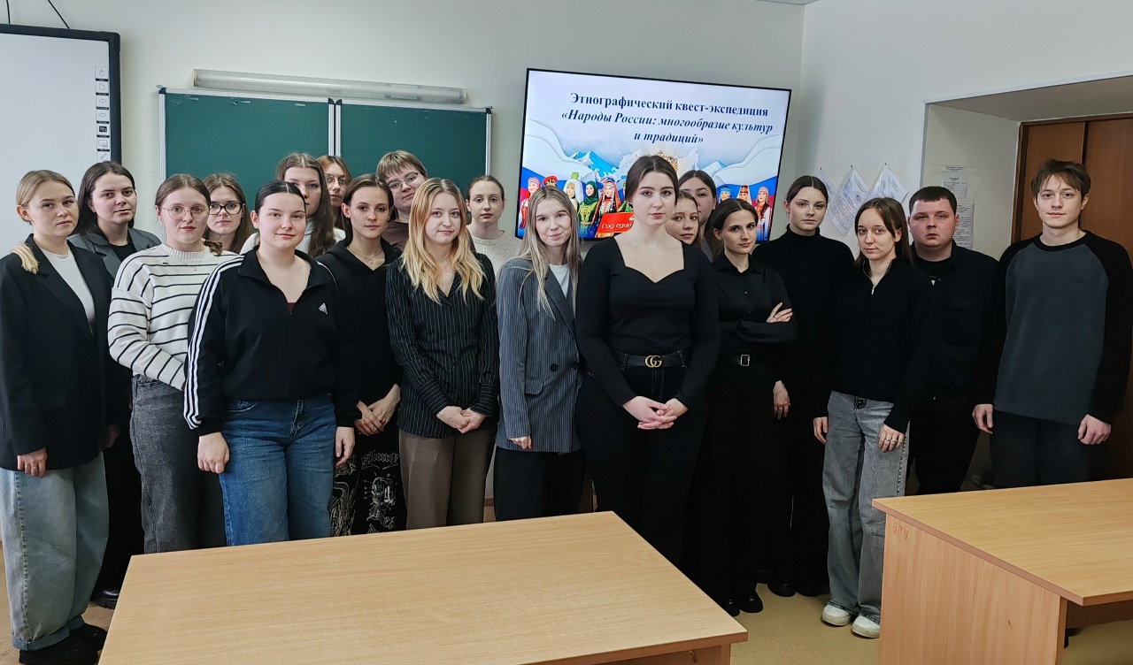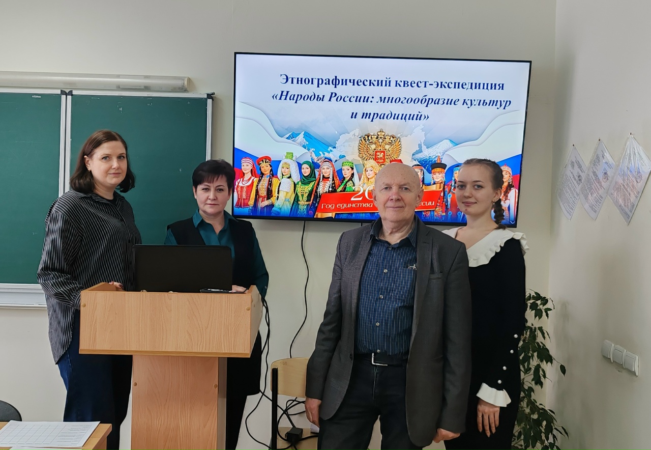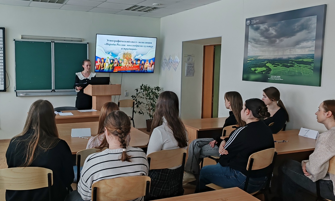 «Народы России: многообразие культур и традиций» 25 февраля 2026 года в рамках плана мероприятий по проведению Года единства народов России на естественно-географическом факультете был проведен этнографический квест-экспедиция «Народы России: многообразие культур и традиций». Основная цель мероприятия – познакомить студентов с этнокультурным многообразием России через интерактивный формат квеста-экспедиции; сформировать уважительное отношение к обычаям и традициям разных народов страны; развить навыки командной работы, исследовательской деятельности и критического мышления в процессе решения творческих и интеллектуальных задач.