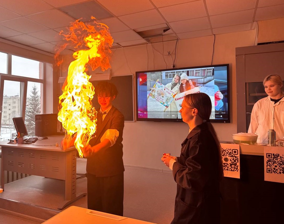 Студенты провели опыт «Поющая труба», который наглядно показывает, что газ может совершать колебания с определённой частотой, создавая звуковые волны, которые мы слышим, это позволило наглядно связать химические процессы с физическими явлениями.