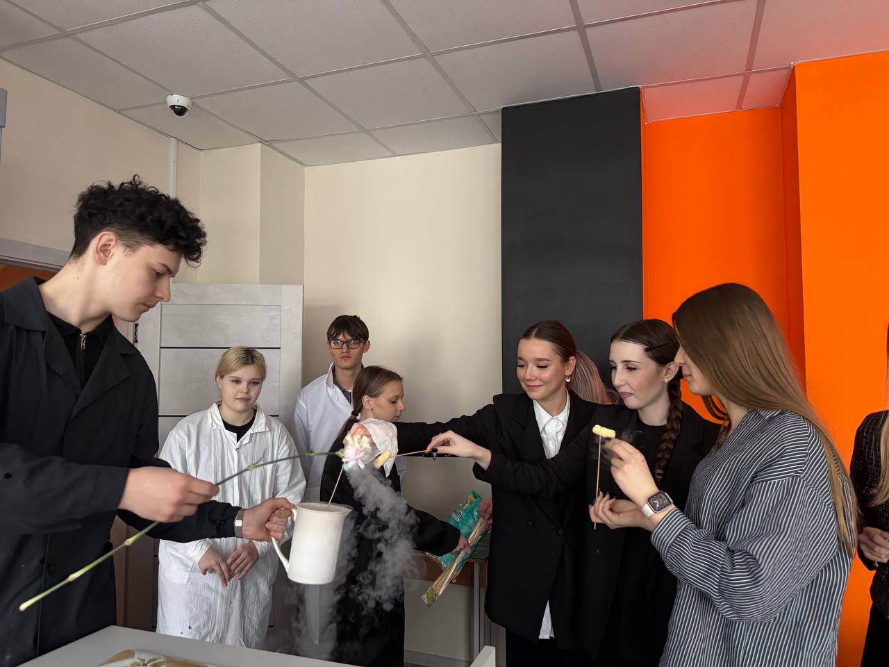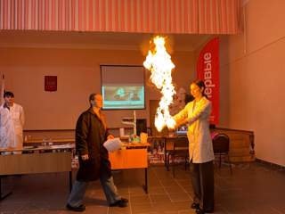 Студенты продемонстрировали серию захватывающих мастер-классов химических экспериментов, виртуозно проведенных студентами. Они превратили химическую науку в настоящее шоу, наглядно демонстрируя удивительные свойства веществ и законов естествознания.