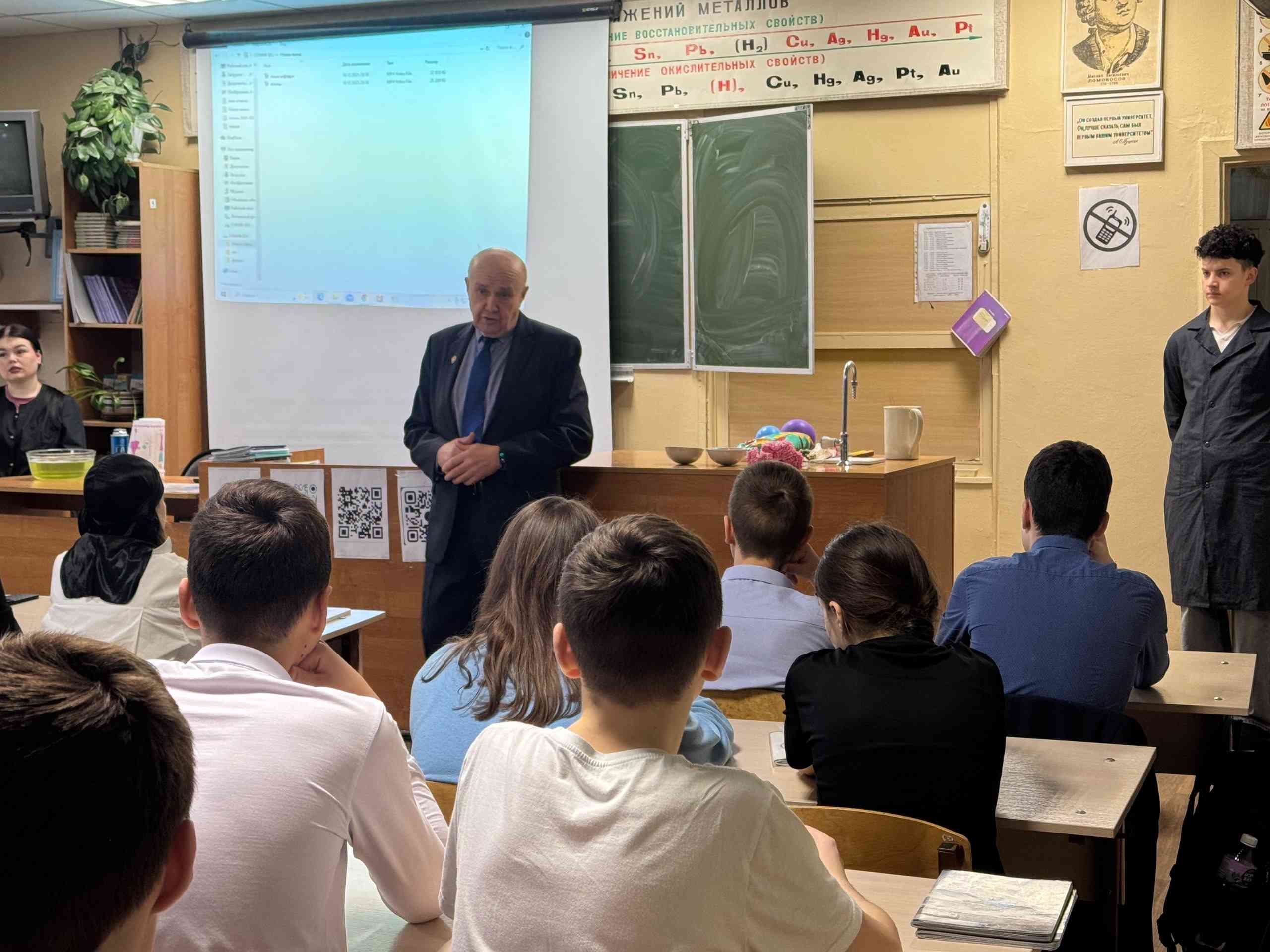 Визит начался с подробной и интересной презентации о кафедре химии. Преподаватели рассказали школьникам о ее истории, значимых достижениях, современных направлениях научных исследований и возможностях, которые открываются перед будущими специалистами в области аналитической химии.