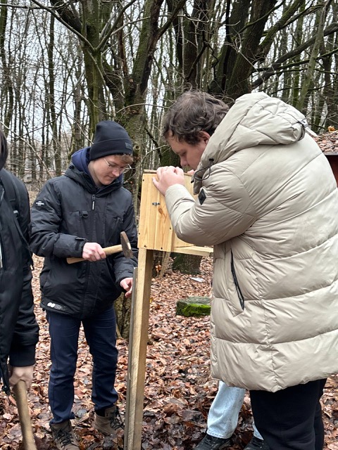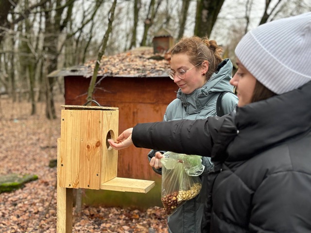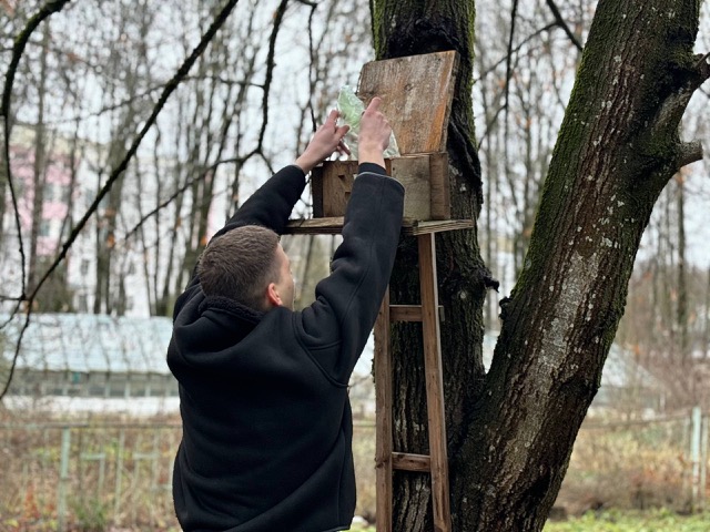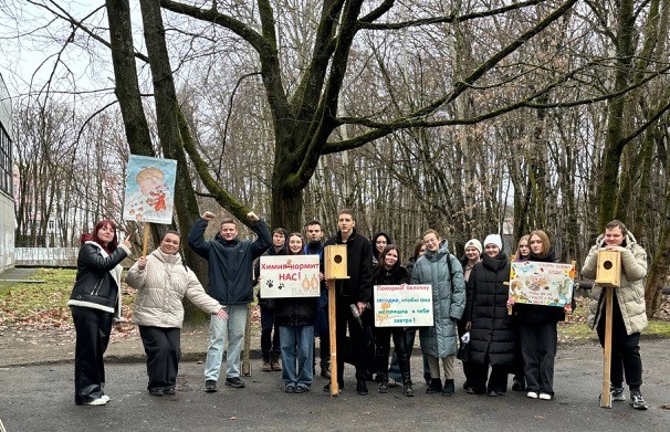 12 декабря участники мероприятия запаслись орехами, семечками и другими лакомствами, чтобы позаботиться о пушистых обитателях и пополнить их запасы пищи на зимнее врем, студенты изготовили кормушки и установили их в прилегающем к университету парке.