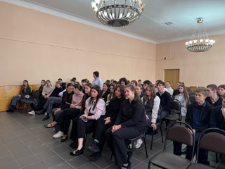 К обучающимся обратился доцент кафедры биологии А.В. Харин, который рассказал про историю Новороссии. Он отметил важность воссоединения исторических территорий с Россией. После беседы студентам выдалась возможность посмотреть фильмы «Донбасс. Признанный» и «Я ушла на войну».