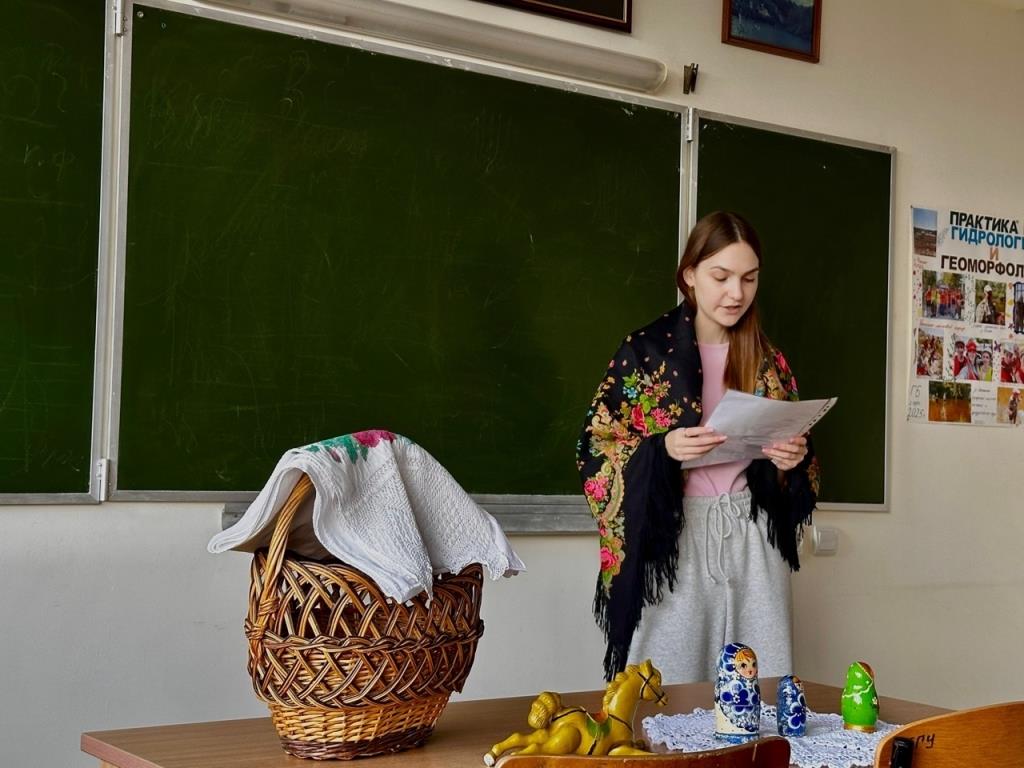 2. «Народные промыслы и ремесла России». Доклад Лашиной Александры погрузил ребят в удивительный мир мастерства и творчества. Были представлены истории возникновения и развития традиционных народных промыслов, основанные на обработке природных материалов, таких как дерево, глина, металл и камень, и включающие в себя художественную роспись, резьбу, вышивку и другие виды декоративно-прикладного искусства. Студенты не только узнали о красоте и уникальности этих ремесел, но и оценили их роль в сохранении культурного кода и идентичности России.