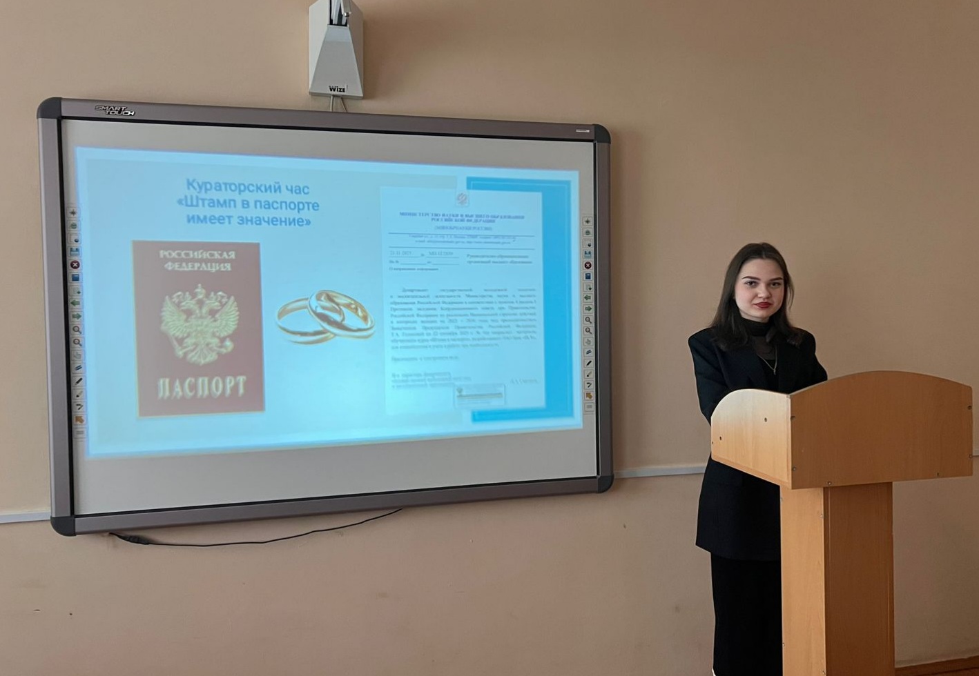01 декабря 2025 г. доцентами кафедры экономики и управления Матюшкиной И.А. и Михалевой О.М. был проведен кураторский час «Штамп в паспорте имеет значение» со студентами 3 и 4 курсов направления подготовки 38.03.04 Государственное и муниципальное управление. Кураторский час организован в рамках реализации мероприятий, утвержденных Координационным советом при Правительстве Российской Федерации по реализации Национальной стратегии действий в интересах женщин на 2023 – 2030 годы.