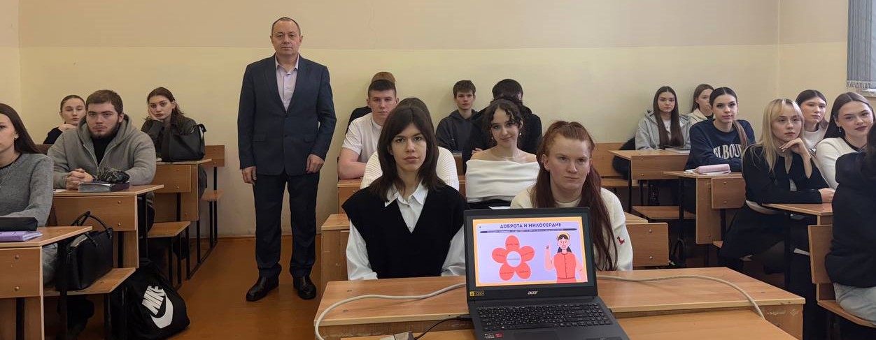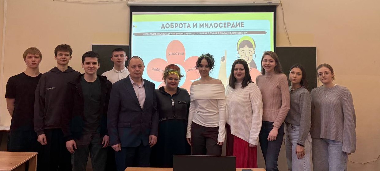 10 декабря 2025 года преподаватели кафедры бухгалтерского учета и финансов Зверев А.В. и Мишина М.Ю. провели со студентами 2 курса направления подготовки Экономика, профиль Финансы и кредит и специальности «Экономическая безопасность» воспитательное внеучебное мероприятие на тему «Доброта и милосердие в нашей жизни».