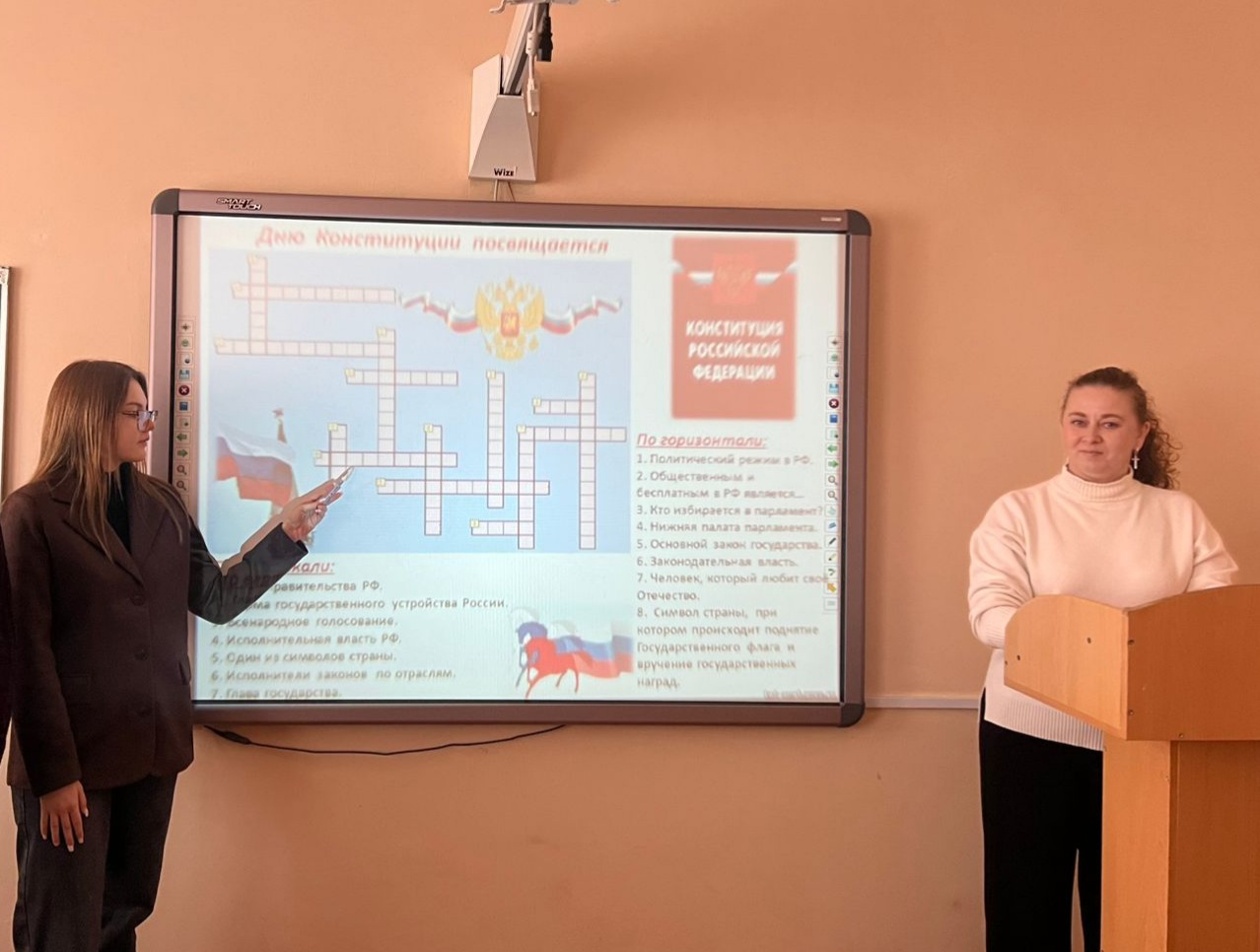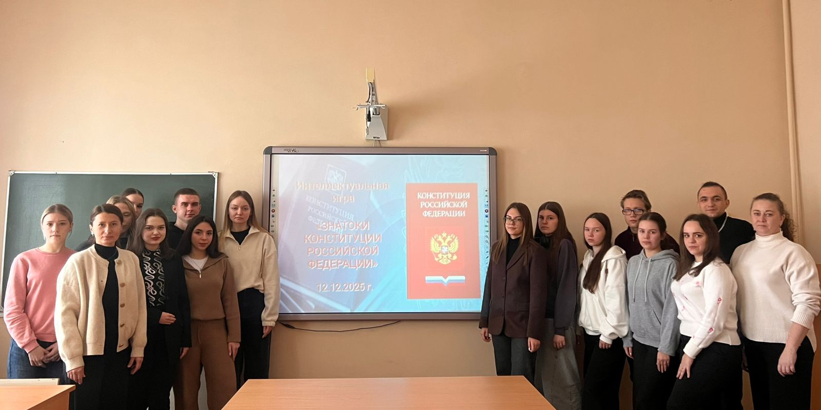 15 декабря 2025 г. доцентами кафедры экономики и управления Матюшкиной И.А. и Михалевой О.М. была проведена интеллектуальная игра «Знатоки Конституции Российской Федерации». Воспитательное мероприятие было приурочено ко Дню Конституции среди студентов очной формы обучения направления подготовки «Государственное и муниципальное управление» 3 и 4 курсов, направления подготовки «Сервис» 3 курса.