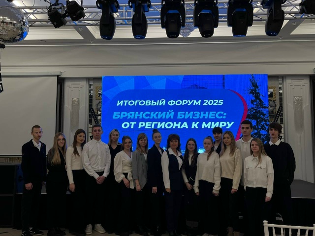 17 декабря 2025 года студенты 4 курса специальности «Таможенное дело» под руководством доцента кафедры Гудковой Ольги Владимировны приняли участие в крупном бизнес-форуме «Брянский бизнес: от региона к миру». Мероприятие было организовано Центром поддержки экспорта Брянской области.